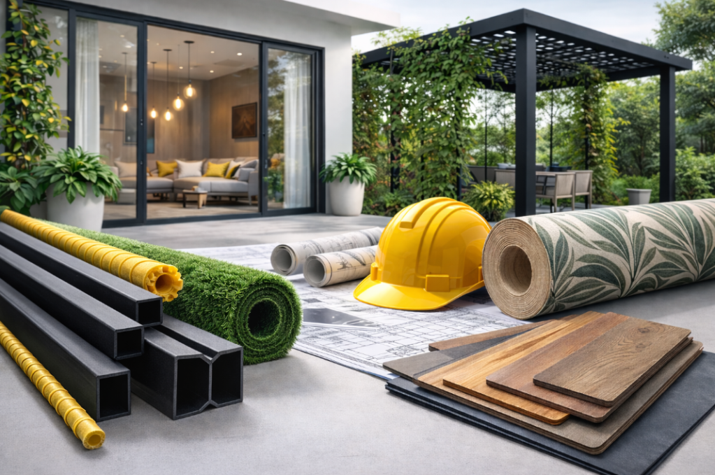 We provide advanced Fiber Glass Composite (FGC) materials, including rebars, profiles, and Trinity poles, along with premium interior and exterior solutions such as wallpapers, vinyl and wooden flooring, trellis systems, artificial grass fencing, and artificial grass flooring. Our product range is carefully selected to ensure long-term performance, low maintenance, and aesthetic appeal.